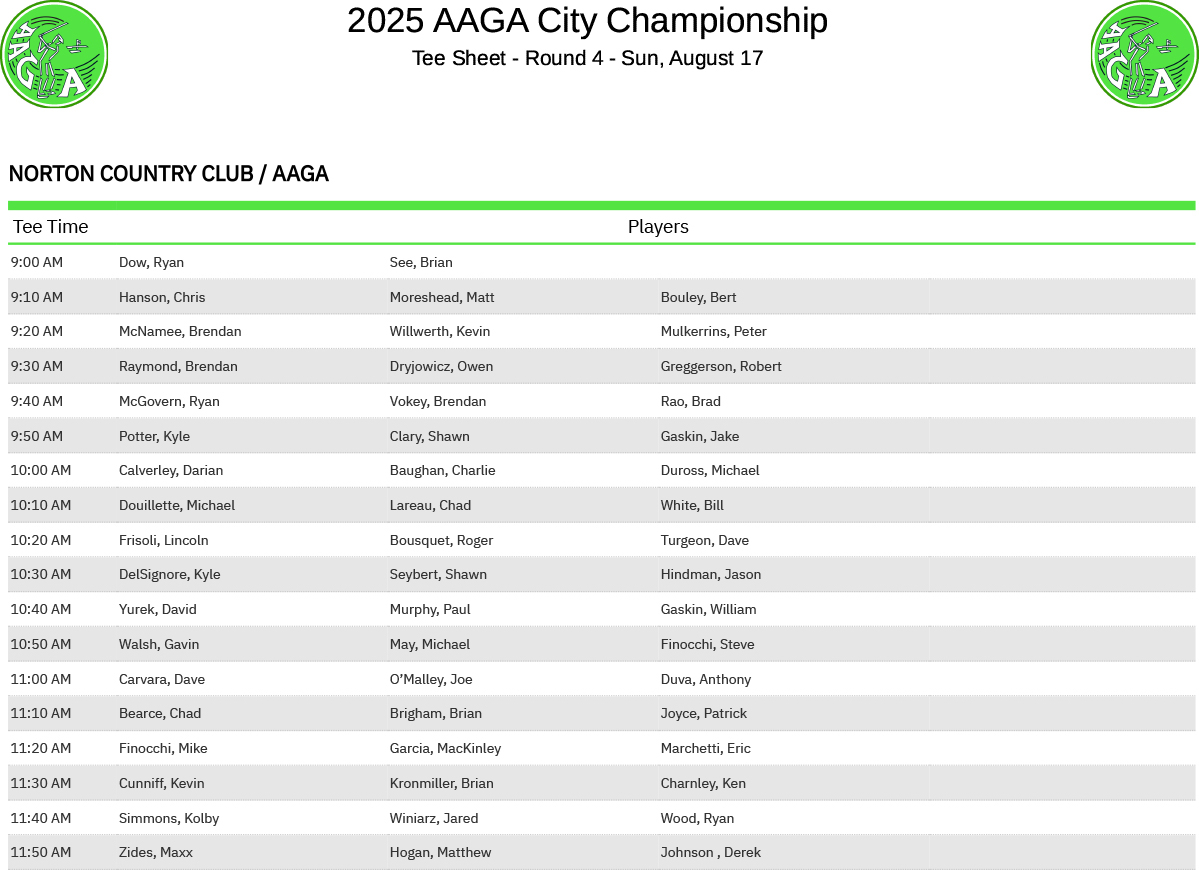 2025 AAGA City Open Final Round Tee Times and Pairings